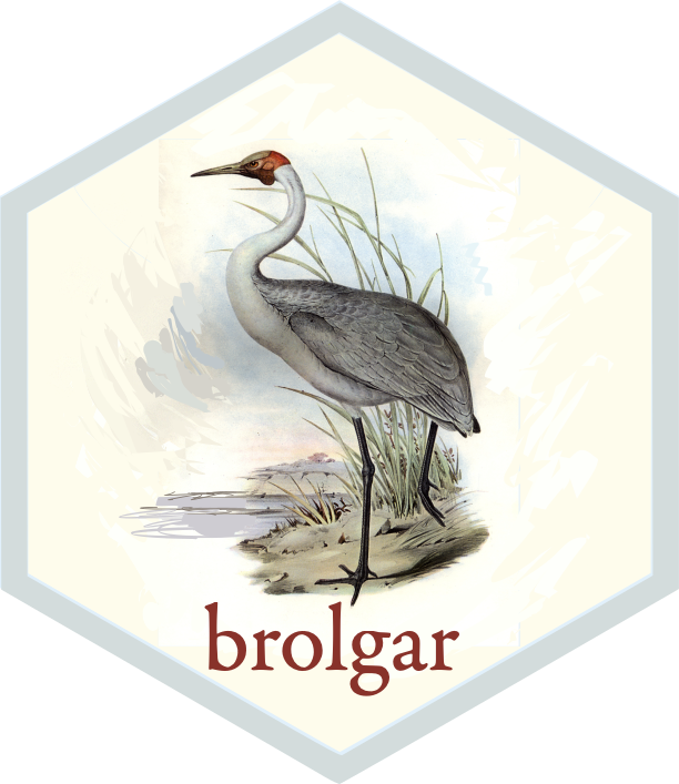 Thank you to Mitchell O’Hara-Wild and Earo Wang for many useful discussions on the implementation of brolgar, as it was heavily inspired by the feasts package from the tidyverts. I would also like to thank Tania Prvan for her valuable early contributions to the project, as well as Stuart Lee for helpful discussions. Thanks also to Ursula Laa for her feedback on the package structure and documentation. Thank you to Di Cook for making the hex sticker - which is taken from an illustration by John Gould, drawn in 1865, and is in the public domain as the drawing is over 100 years old.