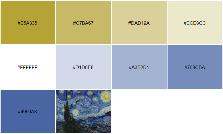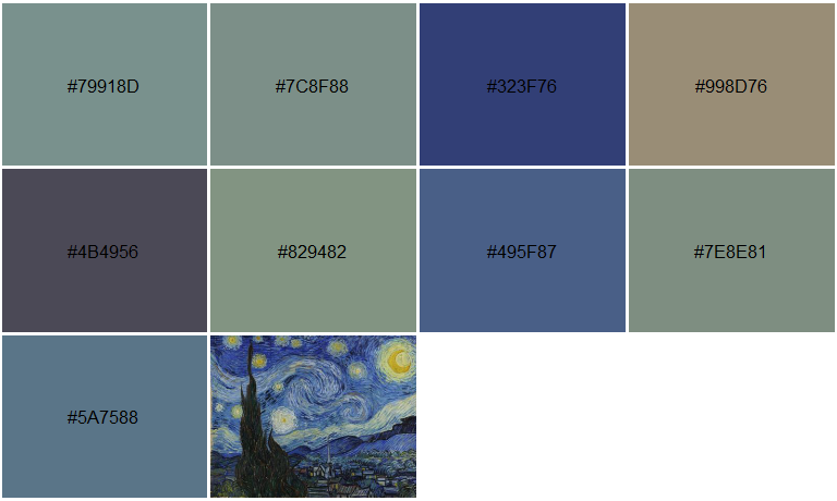 The examples below offer some typical considerations to make when deriving a color palette from an arbitrary image.