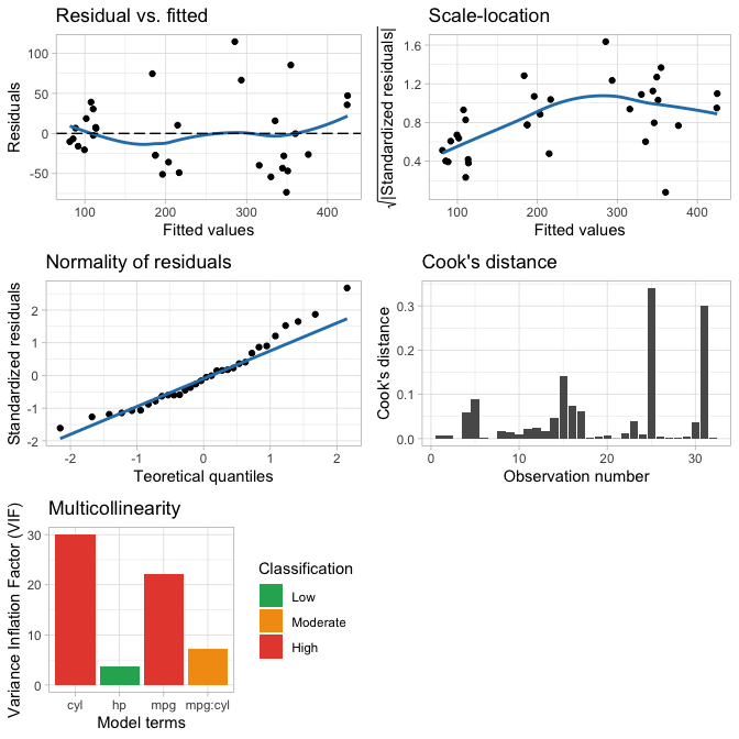 m <- lm(disp ~ mpg + hp + cyl + mpg:cyl, mtcars)