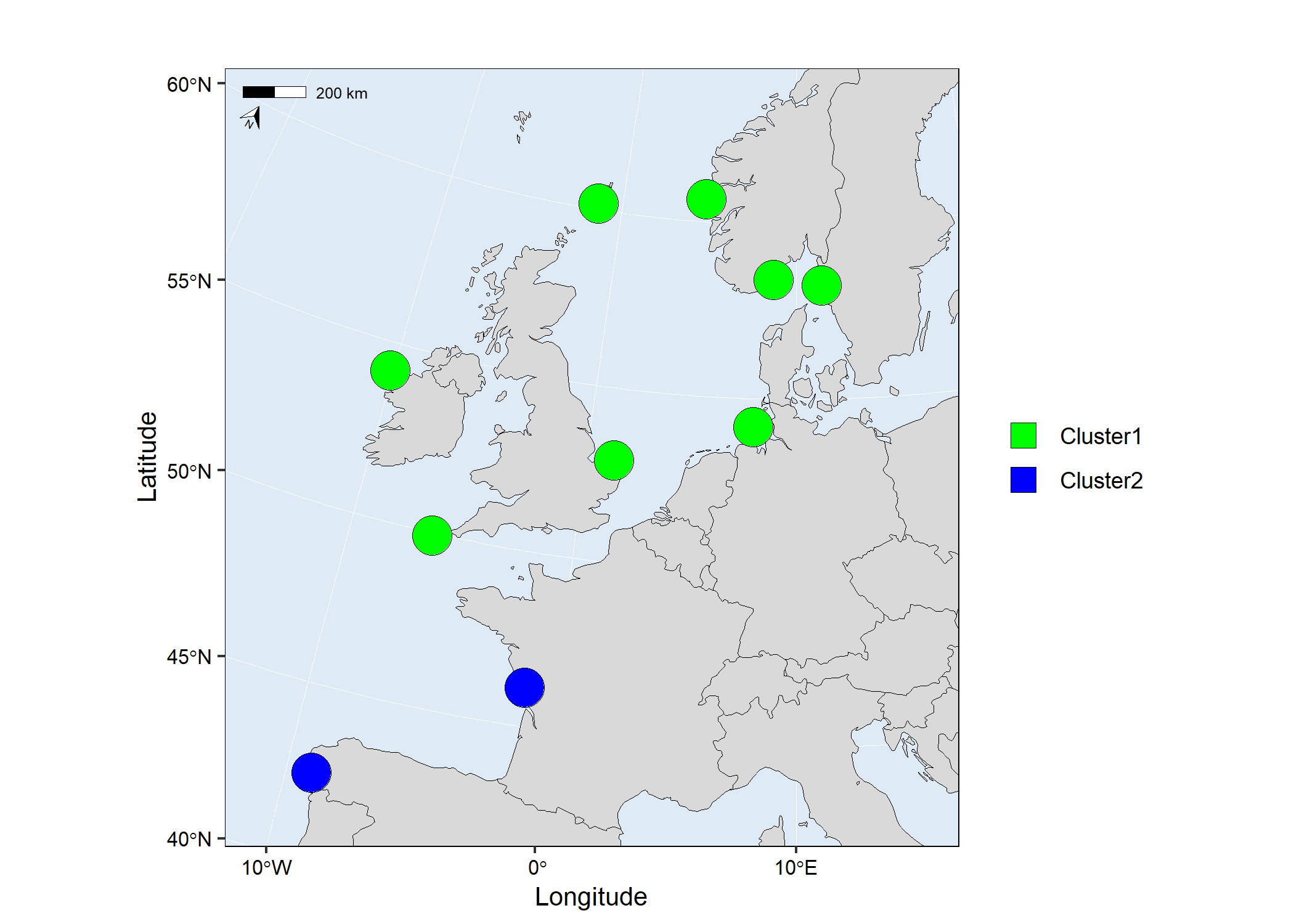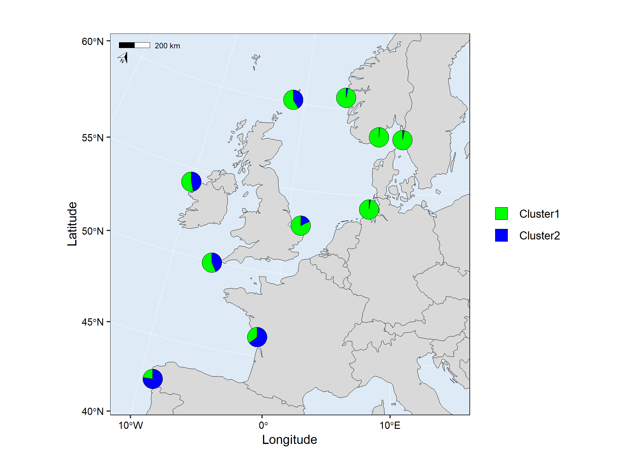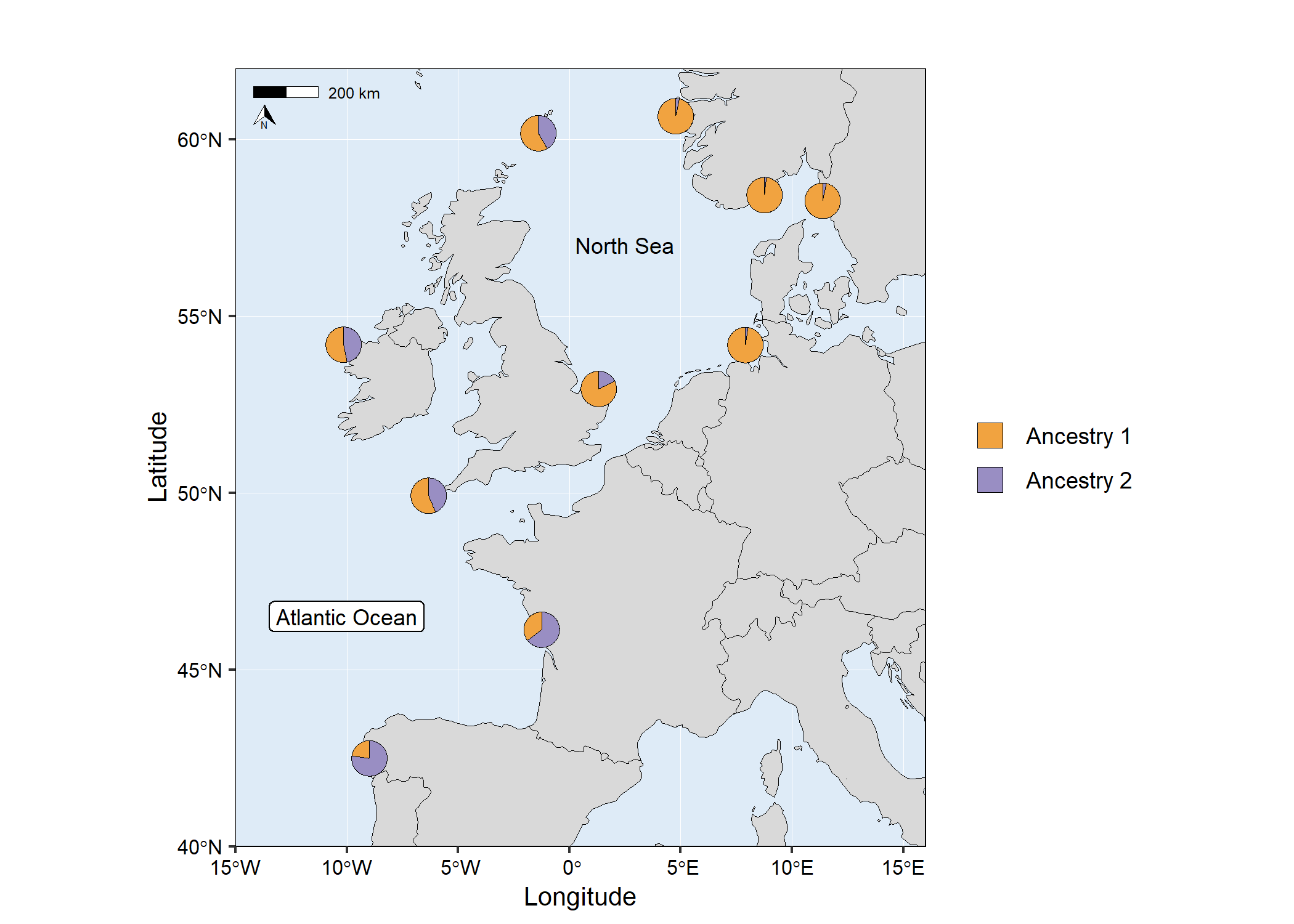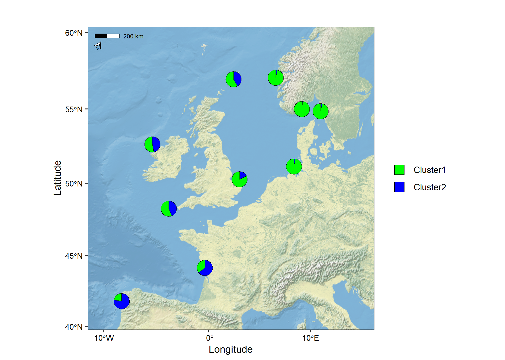 map1 <- mapmixture(admixture1, coordinates, crs = 3035)
