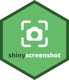 RStudio’s {webshot} package is also similar, but serves a very different purpose. {webshot} is used to take screenshots of any website (including Shiny apps), but you cannot interact with the page in order to take a screenshot at a specific time.