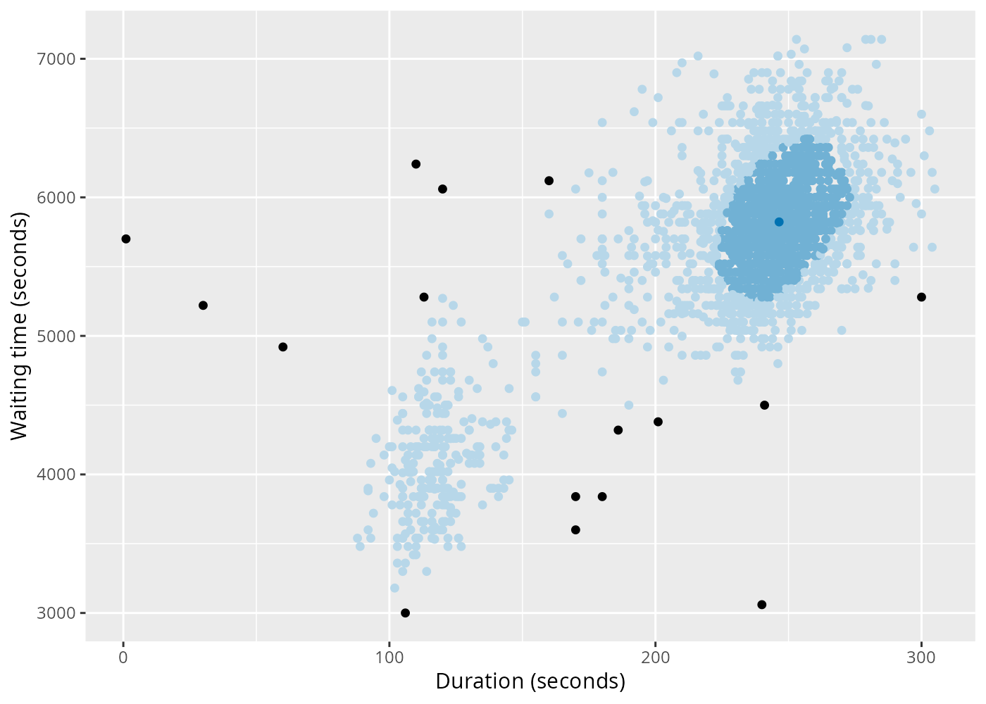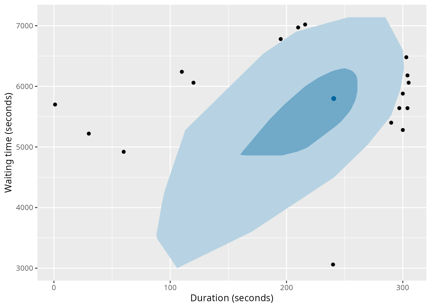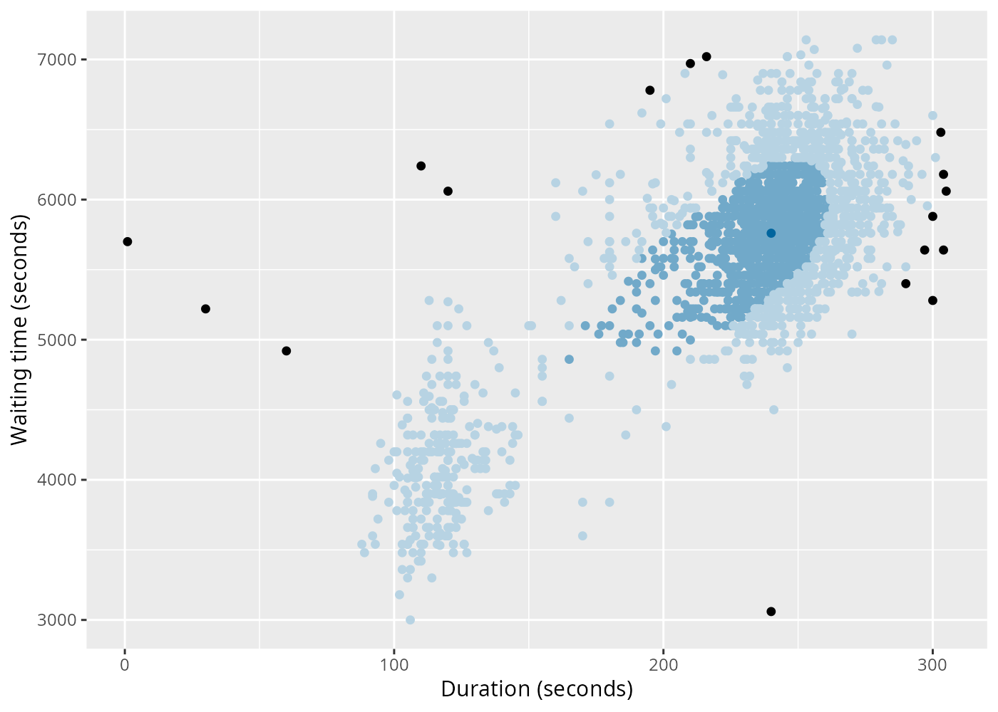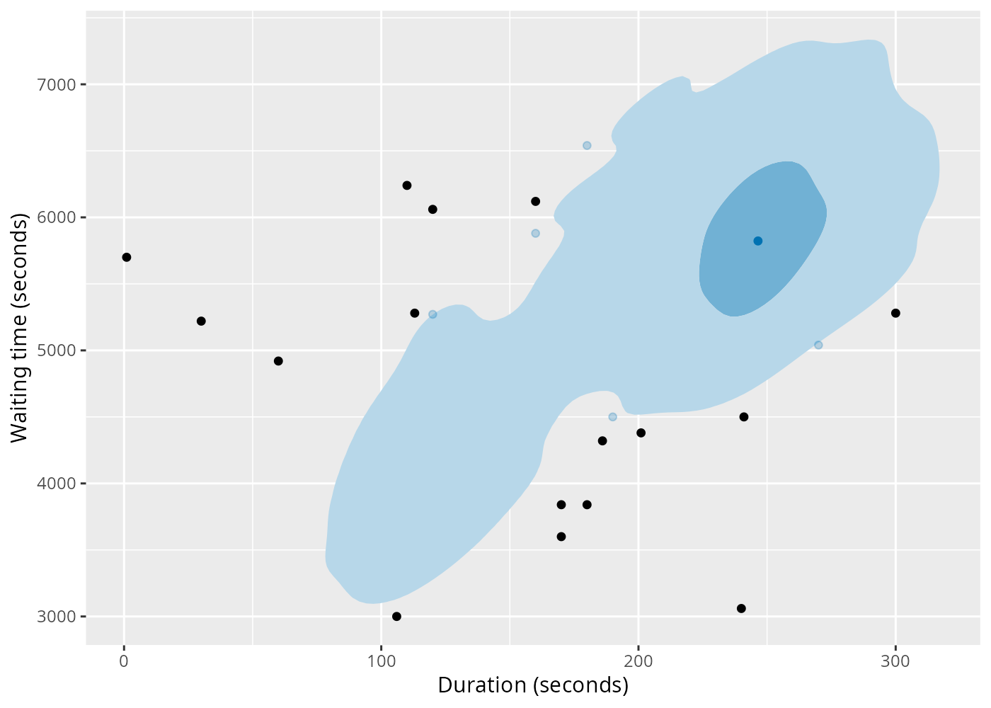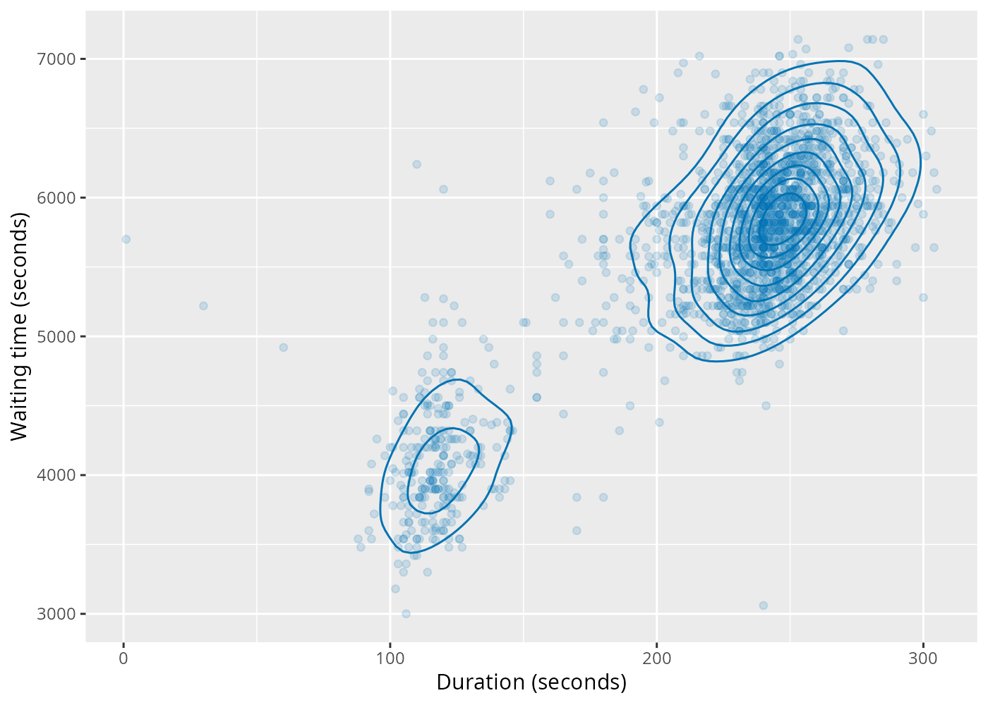 labs(x = "Duration (seconds)", y = "Waiting time (seconds)")